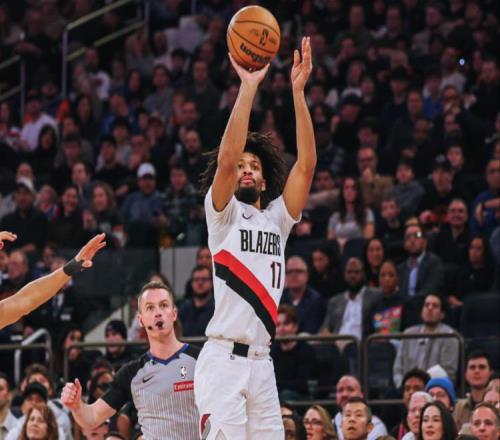 开拓者半场4959落后尼克斯杨瀚森未登场夏普17分布伦森19分 -